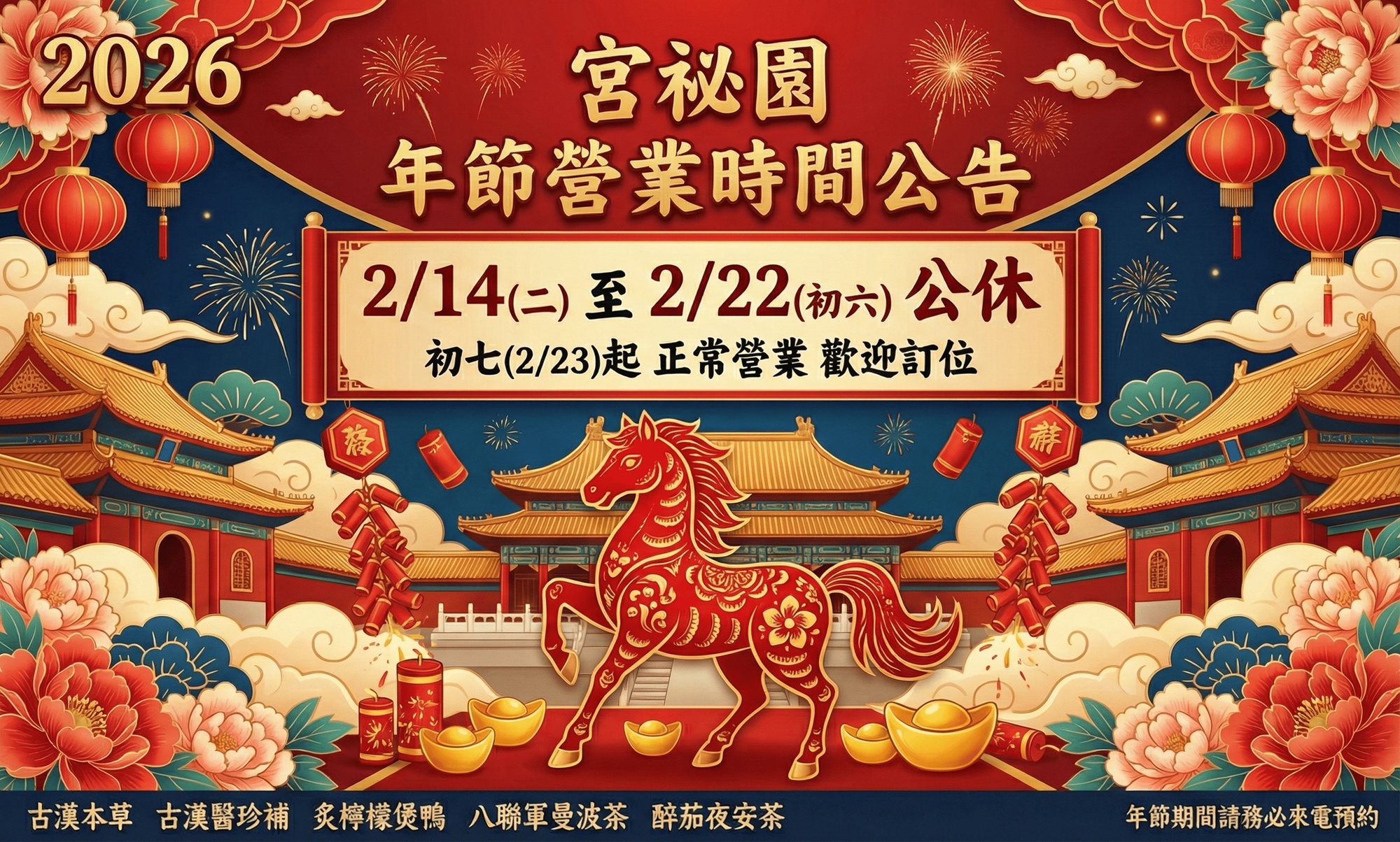 八聯軍曼波茶持續優惠中,歡迎下單訂購。宮秘園用餐採預約制,訂位專線 : 0916-444-218